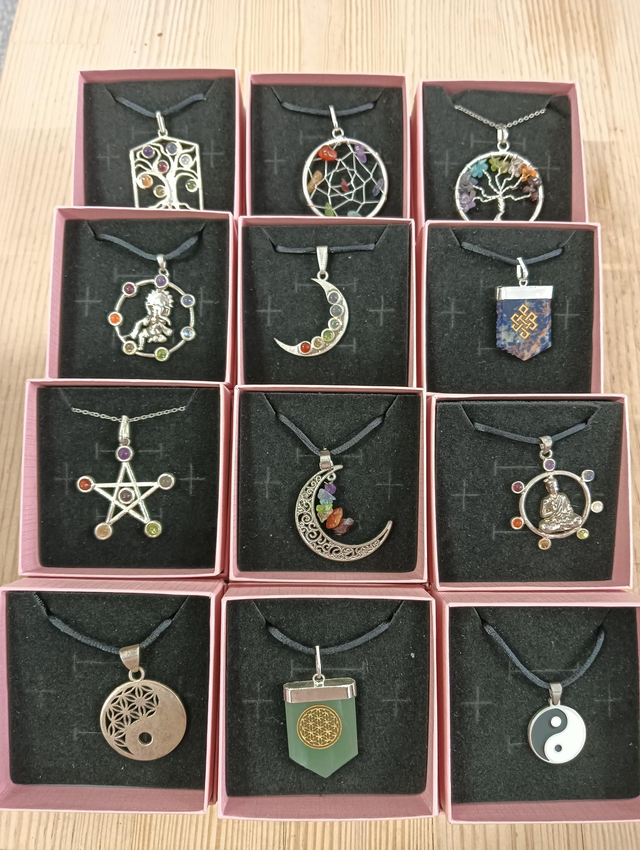 Colgante Árbol de la Vida con incrustaciones de minerales de los 7 chakras. Diferentes modelos, precio por unidad.