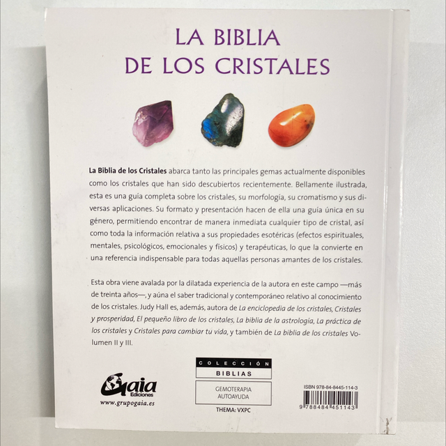 La biblia de los cristales abarca tanto las principales gemas actualmente disponibles como los cristales que han sido descubiertos recientemente. Bellamente ilustrada, ésta es una guía completa sobre los cristales, su morfología, su cromatismo y sus diversas aplicaciones. Su forma y presentación hacen de ella una guía única en su género, permitiendo encontrar de manera inmediata cualquier tipo de cristal, así como toda la información relativa a sus propiedades esotéricas (efectos espirituales, mentales, psicológicos, emocionales y físicos) y terapéuticas, lo que la convierte en una referencia indispensable para todas aquellas personas amantes de los cristales.